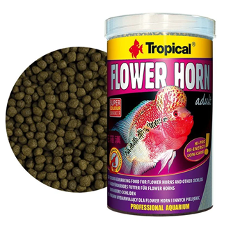 Tropical Flower Horn Adult Pellet, Yetişkin Flowerhorn ve diğer yetişkin cichlid türü balıklar için renk arttırıcı pellet balık yemleri. Yetişkin Flowerhorn cichlidler ve diğer Cichlid balıkları için yüksek proteinli, yüzen pelet yemler. Bu küçük pelet yemler yetişkin balıkların günlük beslenmesi için tasarlanmıştır. Kolayca asimile edilebilir protein seviyesi balıkların büyümesini kolaylaştırır.